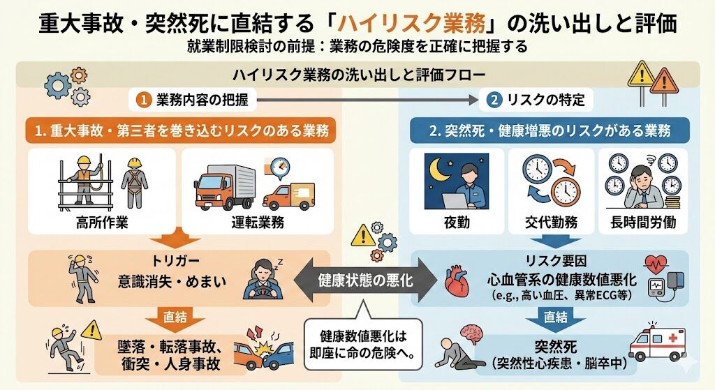 突然死や重大事故に直結する「ハイリスク業務」の洗い出しと評価