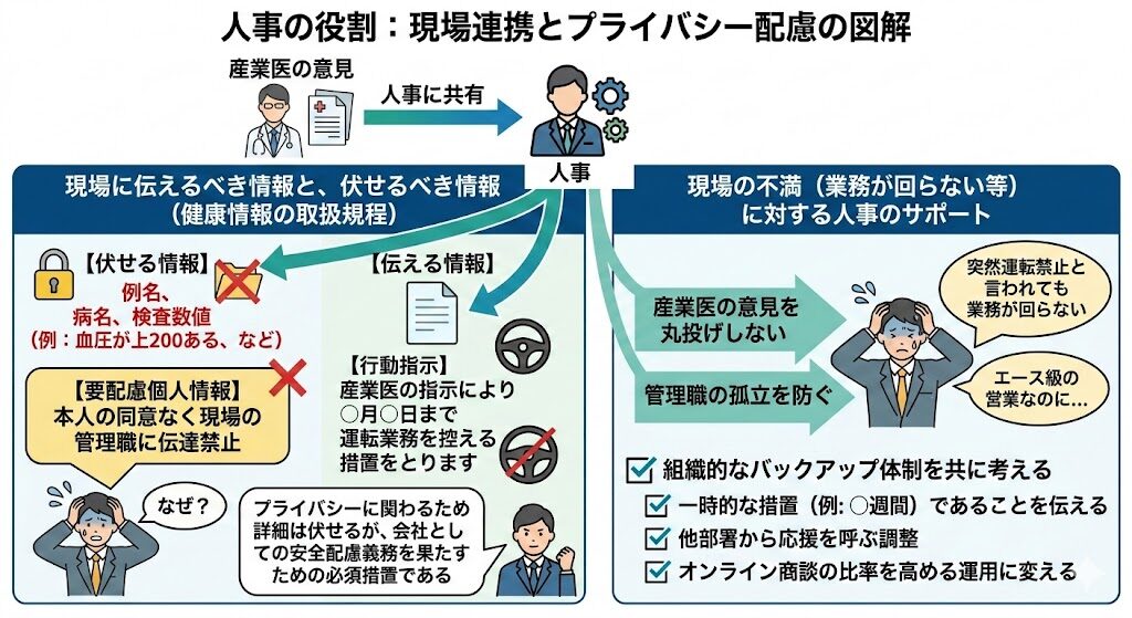 現場管理職への連携と、プライバシーへの配慮(人事の立ち回り)