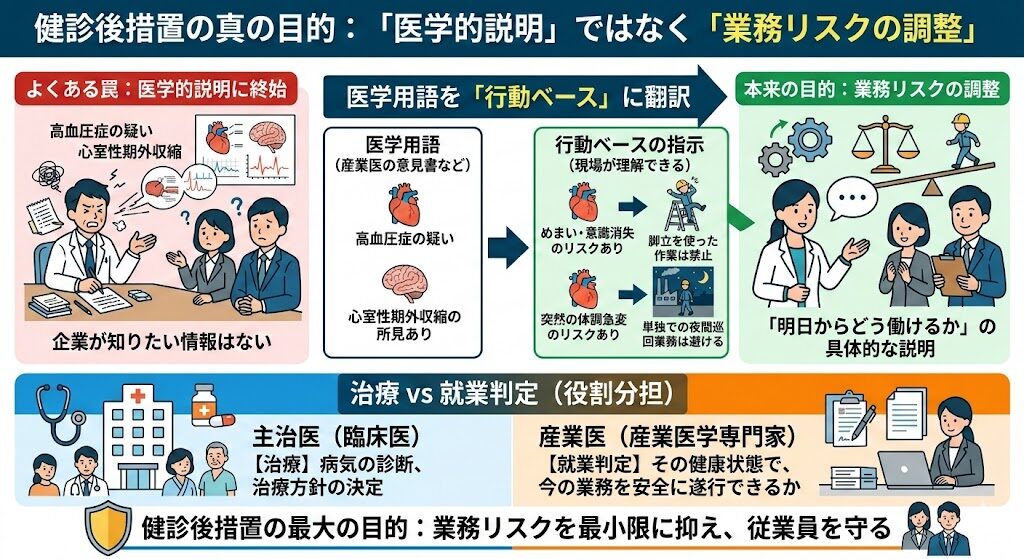 健診後措置の最大の目的は「医学的説明」ではなく「業務リスクの調整」