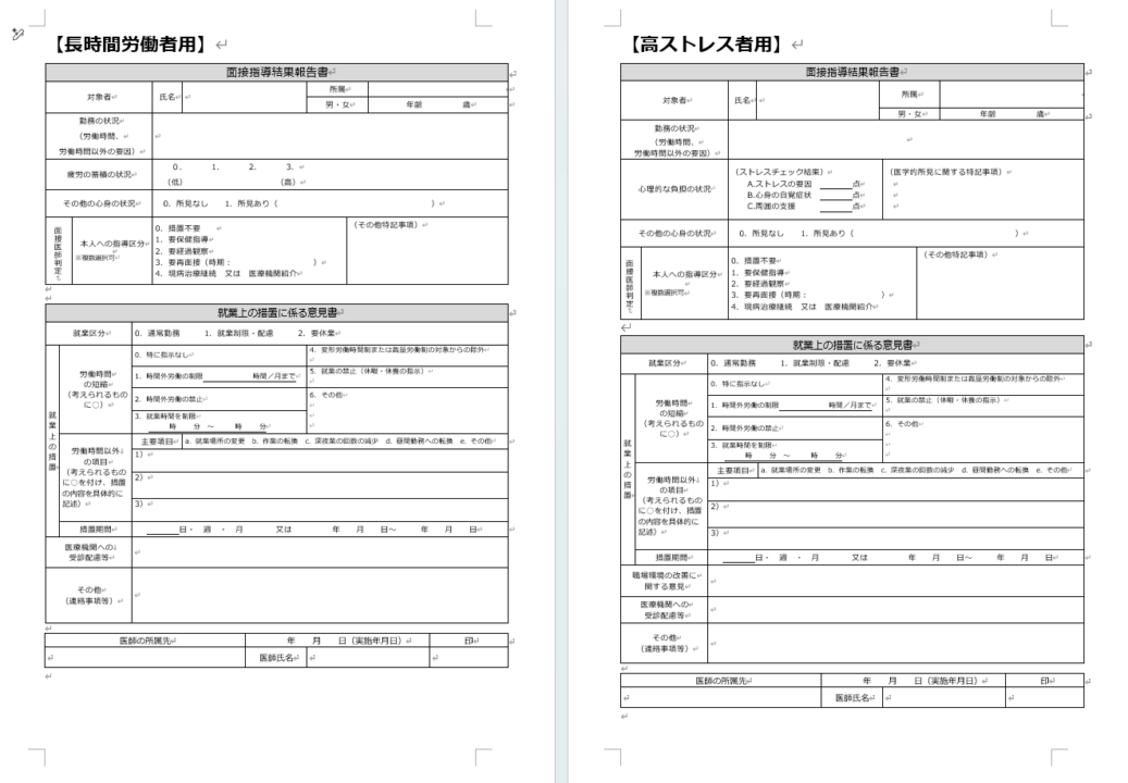 (文書名)就業上の措置に係る意見書(人事管理用)