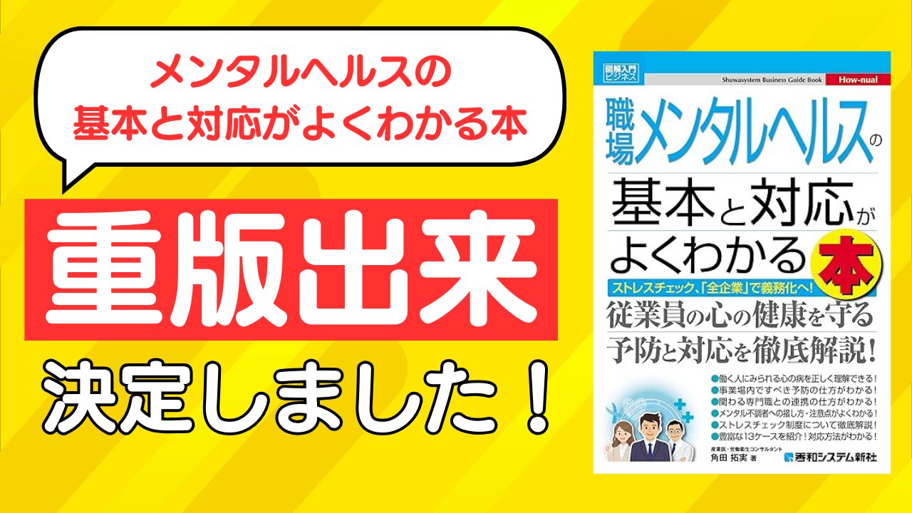 代表産業医著書「図解入門ビジネス 職場メンタルヘルスの基本と対応が よくわかる本」10/25発売 Amazonでの予約はコチラ